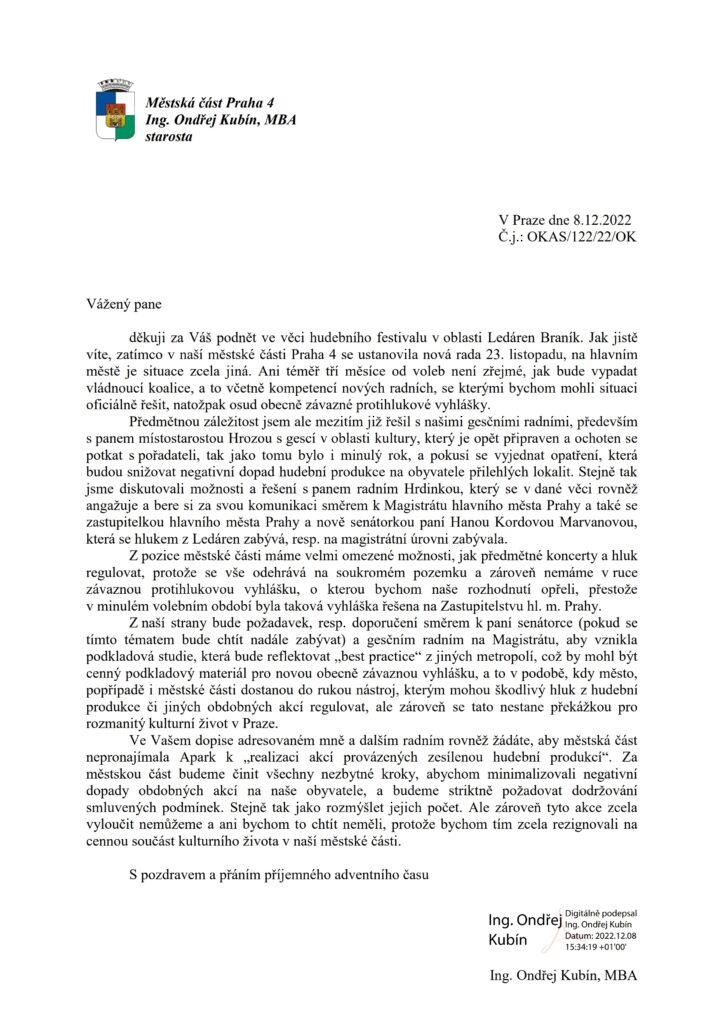 Už se nemůžeme dočkat, až členům pracovní skupiny předáme důkazy o tom, jak fungovala v roce 2022. Jak fungovala „samoregulace“ pořadatele a jak splnil své sliby ke kterým se zavázal. Také se těšíme až budeme moci všem pustit videozáznamy toho, jak vypadá z dalekého okolí festivalu. Každý se bude moci přesvědčit jak „tichý“ je tento festival na kilometry daleko. Taky je třeba řešit pasivitu Policie ČR a Městské Policie při rušení nočního klidu hudebními šíbry v Praze.