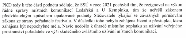 K neoprávněnému uzavírání ulice U Kempinku pořadatelem festivalu Ledárny Open Air v roce 2022 Magistrát uvedl: