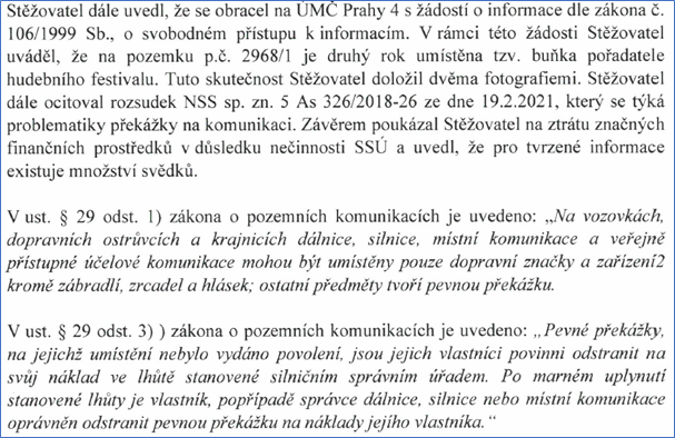 Magistrát hlavního města Prahy, odbor pozemních komunikací a drah (PKD) nám dne 6.2.2023 doručil výsledek přezkoumání (ne)postupů úředníků z Prahy 4, konkrétně Silničního správního úřadu Prahy 4 (SSÚ) ve věci festivalu v Ledárnách Braník. Není pro nás překvapení, že Magistrát konstatoval celou řadu přestupků pořadatele na poli silničního práva a značné škody představující neoprávněné zábory komunikací v okolí festivalů Lucerna Music Bar Open Air a Ledárny Open Air a nevymáhané pokuty.