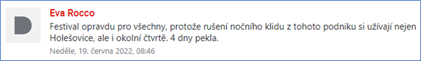 Přesto si na Praze 7 pořadatel dovolí vytvářet hluk v pracovních dnech do 2 hod a v sobotu do 5ti. Vedení Prahy 7 dělá že to nevidí. Proč asi?