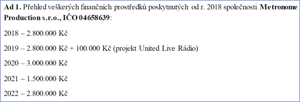 Naprosto neuvěřitelné je, že veškeré porušování zákonů a terorizování občanů několika okolních čtvrtí se děje na pozemcích hlavního města Prahy. Aby toho nebylo málo, dostávají pořadatelé (zřejmě jako odměnu za porušování zákona a terorizování tisíců občanů) obrovské finanční prostředky z daní občanů které obtěžují nočním hlukem. Z daní občanů tedy hlavní město financuje jejich terorizování hlukem a porušování zákona rušením nočního klidu. Dotace poskytuje Magistrát hlavního města Prahy, konkrétně odbor kultury, který doposud vedla právě radní Hana Třeštíková. Konkrétně Metronome festival dostává milionové dotace každý rok.