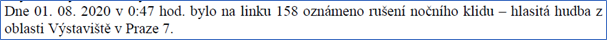 Rušení nočního klidu tímto festivalem bylo opakovaně řeší i policie ČR. Například v roce 2020 probíhal Metronome festival od 17. do 19. 9. 2020: