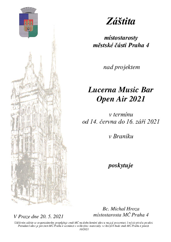 Místostarosta Prahy 4 Bc. Michal Hroza (TOP 09) opakovaně tvrdil, že o přesunu festivalu se dozvěděl až v době stavby pódia v Ledárnách. Podle jeho slov na kontrolním výboru pak zajistil otočení podia směrem na Barrandov a Chuchli a za to poskytl festivalu záštitu. Jenže to se zdá krajně nepravděpodobné. Podium se totiž staví těsně před začátkem festivalu, protože se pronajímá. Festival v roce 2021 začal 16.6.2021. Jenže Hroza poskytl záštitu už 20.5.2021, nemluvě o tom, že se o záštitu muselo požádat a vše dohodnout. 25.5.2021 poskytla záštitu i Třeštíková, které se zasadila na pokyn Čižinského o přesun do Braníka. Podle všeho tak šlo o pečlivě koordinovanou akci.