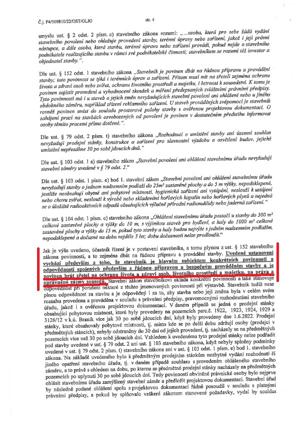 Další podstatnou věcí v rozhodnutí je, že stavební úřad důrazně v rozhodnutí uvedl, že ustanovení které pořadatel festivalu porušil „vychází především z toho, že stavebník je hlavním subjektem konkrétních povinností a odpovědnosti spojených především s řádnou přípravou a bezpečným prováděním stavby a je povinen brát zřetel na ochranu života a zdraví osob, životního prostředí a majetku, na práva oprávněné zájmy sousedů„