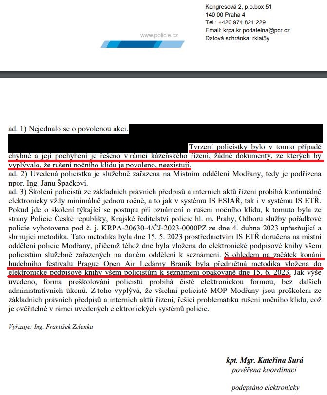 POZN. Z důvodu dalších probíhajících řízení, jejichž cílem je efektivně řešit ignoraci rušení nočního klidu ze strany policie ČR nemůžeme zveřejnit celý text.